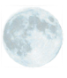 A peaceful rocky shoreline at dusk with a calm sea, a partly cloudy sky, and a visible moon on the horizon.